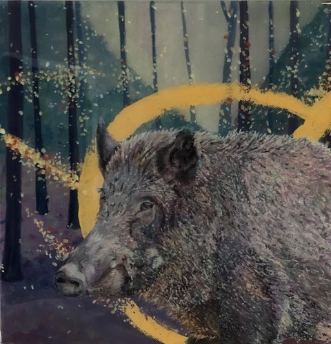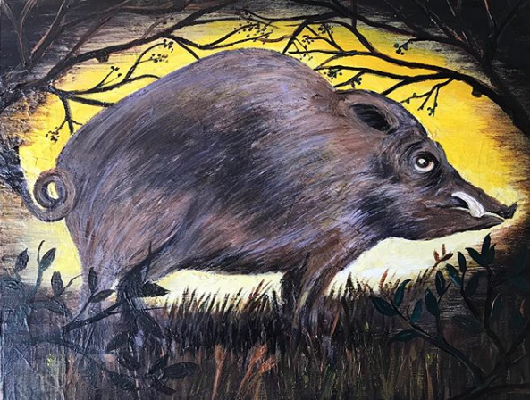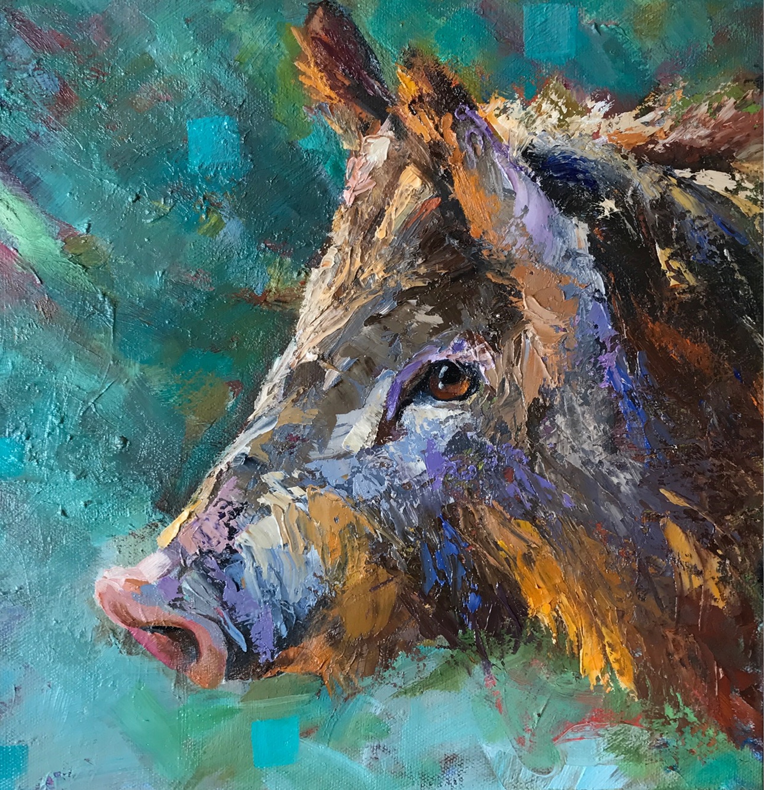 Debbi Green, Il Cinghiale Italiano, 2019, Oil on Canvas, 10 x 10 x 2 inches