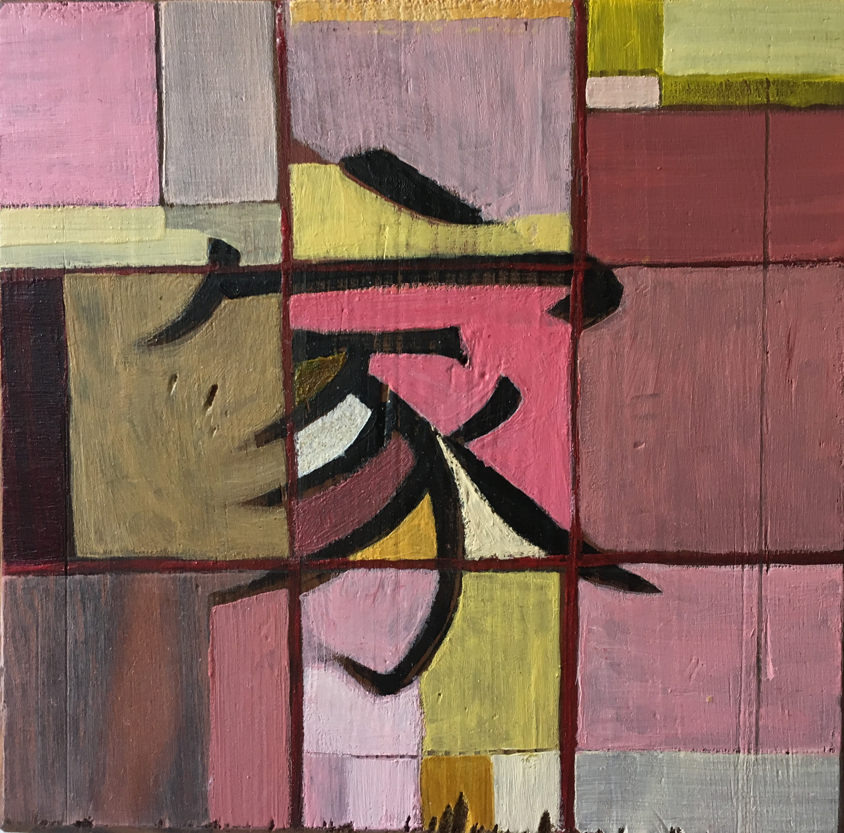 Polly Chu, Jia - (home is a roof with a pig underneath), 2019, Egg tempera & pencil on wood, 5 x 5.25 inches