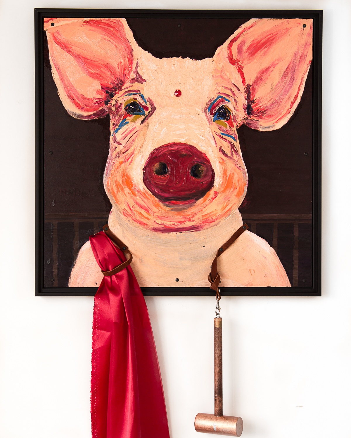 Jose Angel Hernandez, Year of the Pig, 2018, Mixed media with 3D elements, 25 x 25 inches