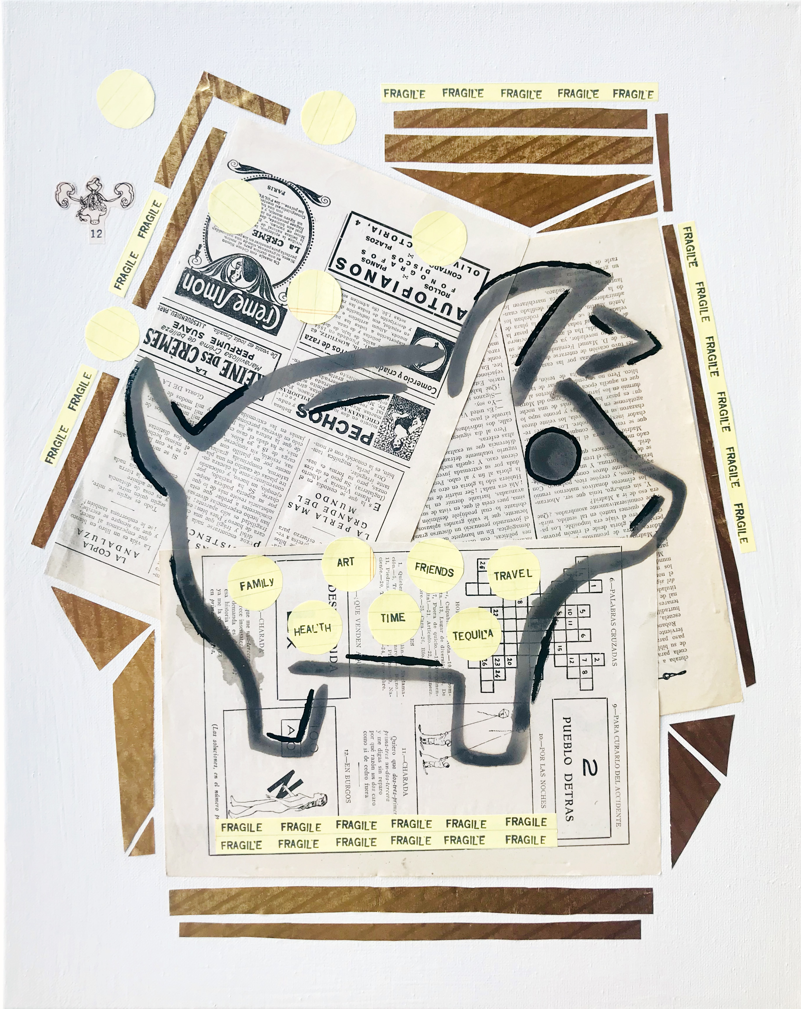 Chris MacDonald, Fragile, 2019, Acrylic & newspaper on canvas, 20 x 16 inches