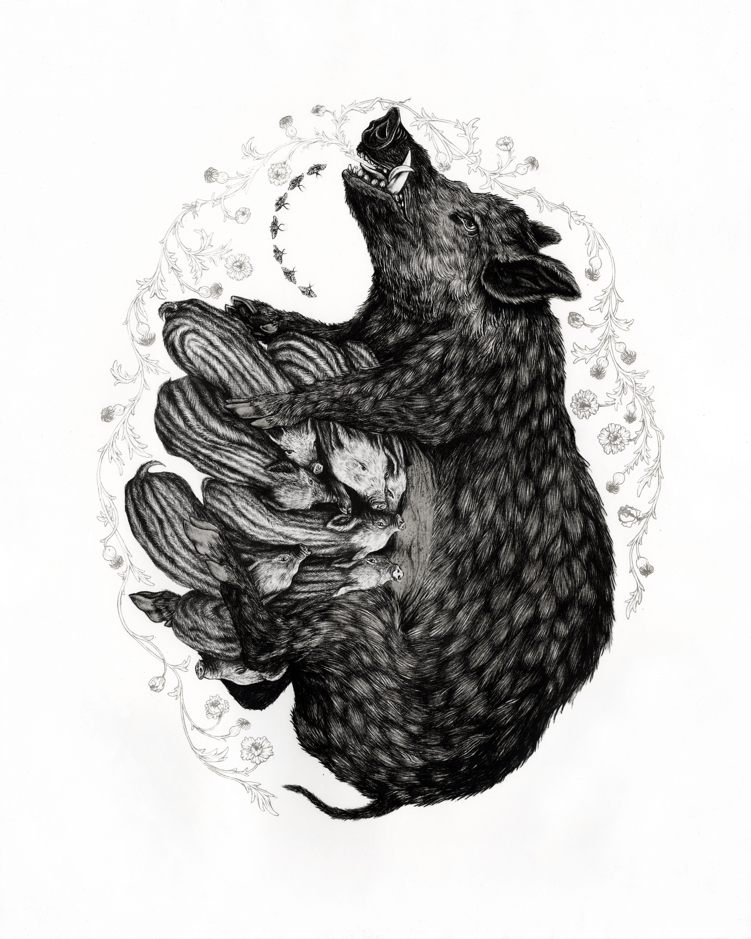 Niki Solima, Year of the Boar, 2019, Ballpoint pen and ink, 10 x 8 inches
